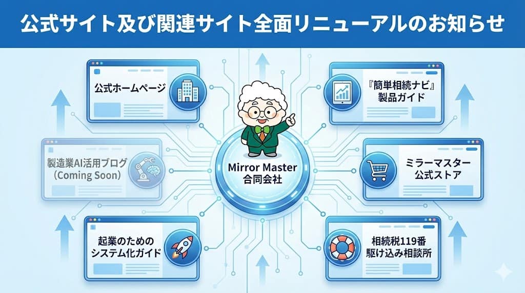 この度、ミラーマスター合同会社では、より分かりやすく、より快適に情報を取得いただけるよう、コーポレートサイト及び各事業の関連サイトを全面的にリニューアルいたしました。